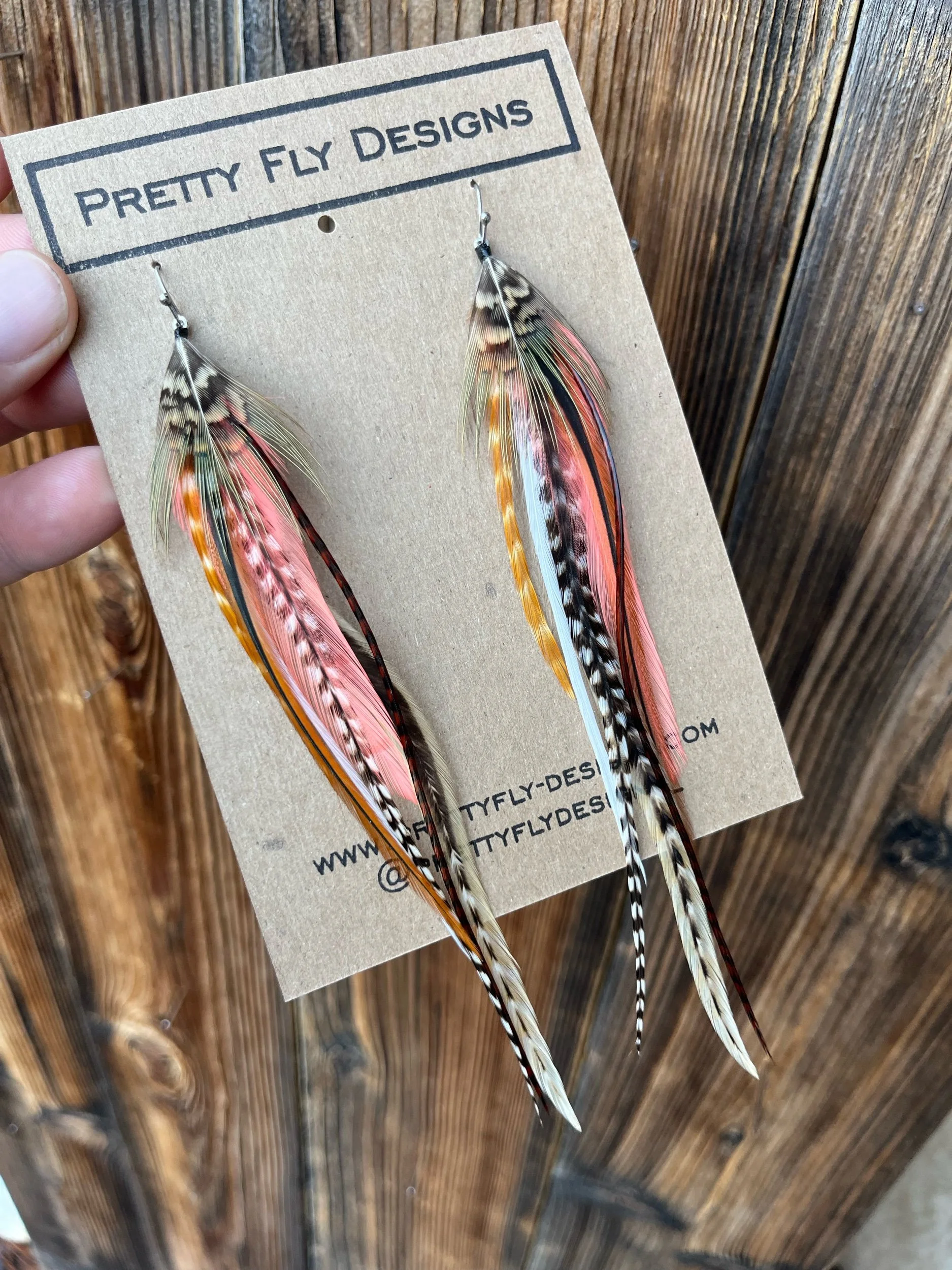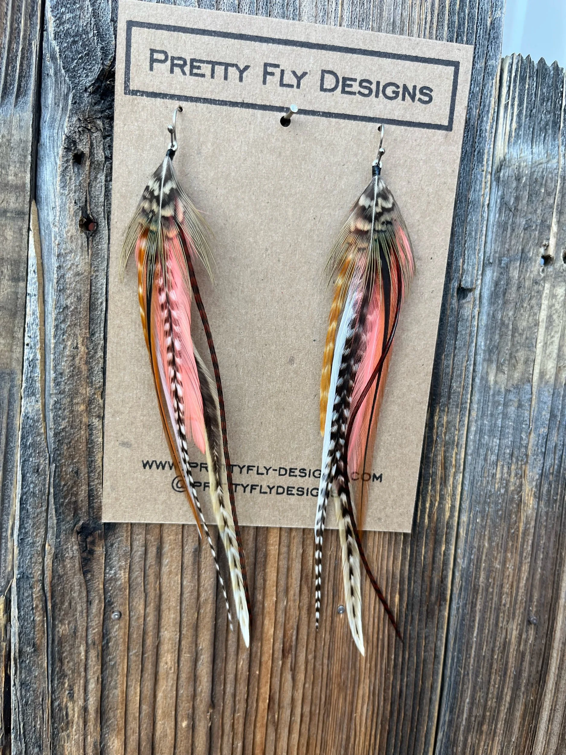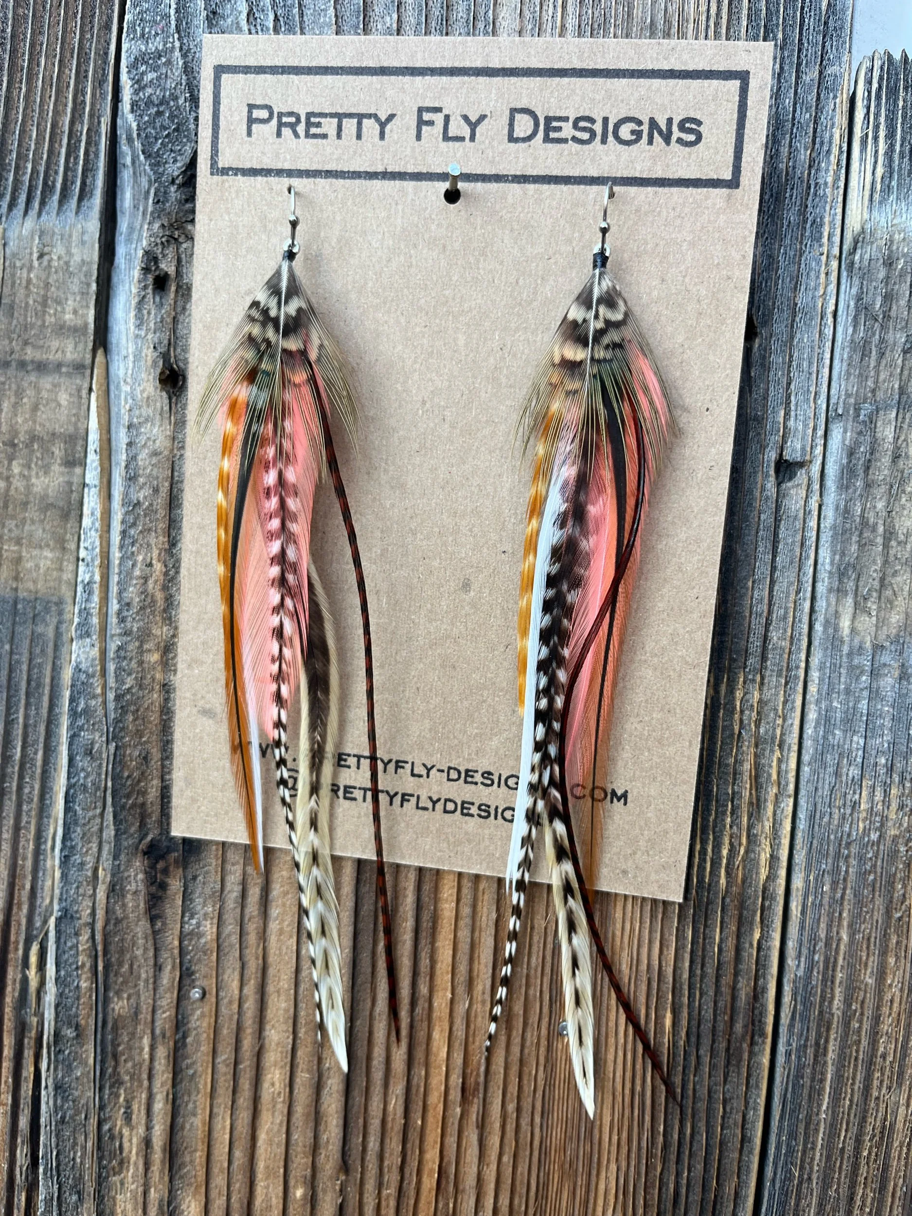 Earrings › Autumn Coral Image 1 of 4 Image 2 of 4 Image 3 of 4 Image 4 of 4 Autumn Coral $43.00 A very popular pair with natural colors matched with a pop of coral! Tied with Rooster and Ringneck Pheasant. Quantity: Add To Cart Added! A very popular pair with natural colors matched with a pop of coral! Tied with Rooster and Ringneck Pheasant.