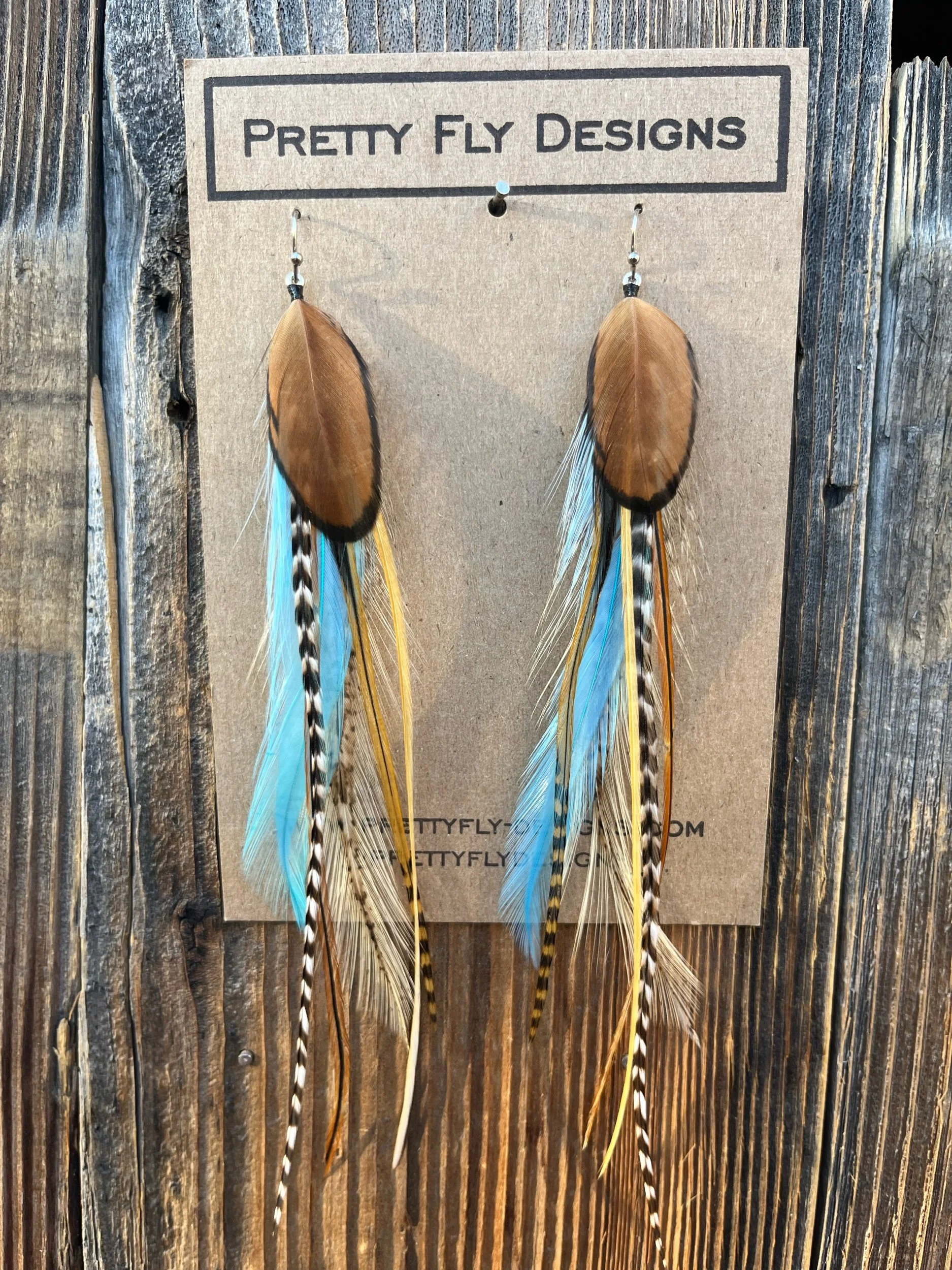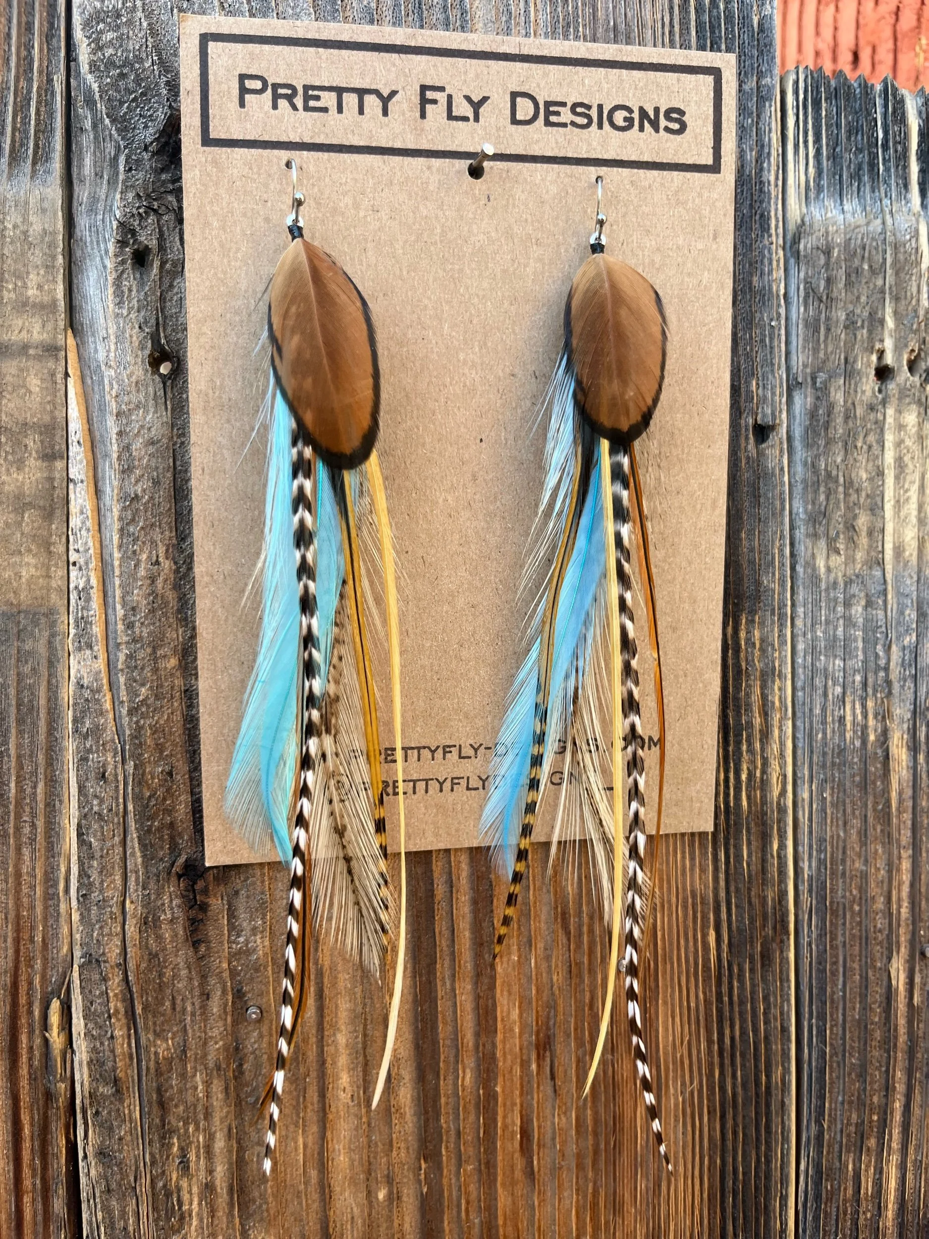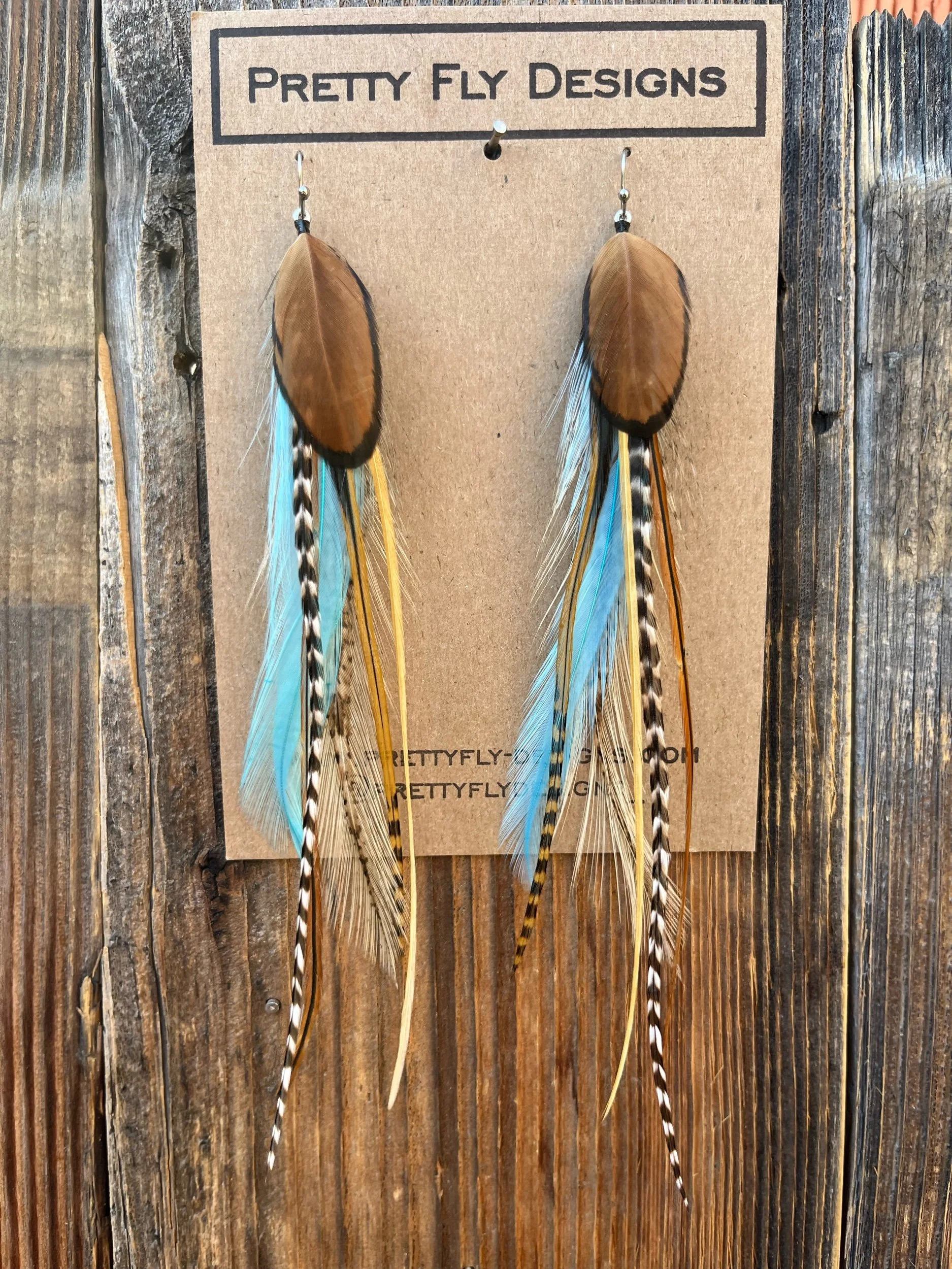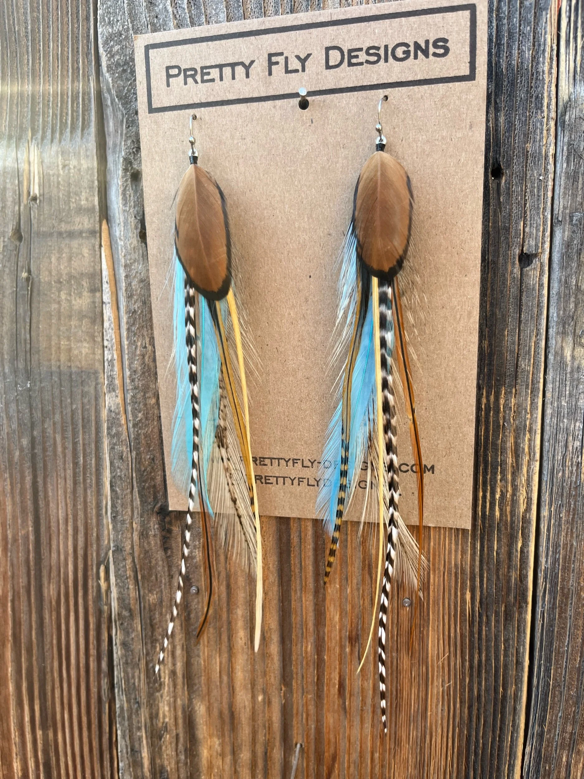 Earrings › Rosalynd Image 1 of 4 Image 2 of 4 Image 3 of 4 Image 4 of 4 Rosalynd Sale Price: $40.00 Original Price: $45.00 sold out Six inch long blend of bright aqua blue with a natural colors mixed in. Tied with Rooster feathers! Sold Out Added! Six inch long blend of bright aqua blue with a natural colors mixed in. Tied with Rooster feathers!