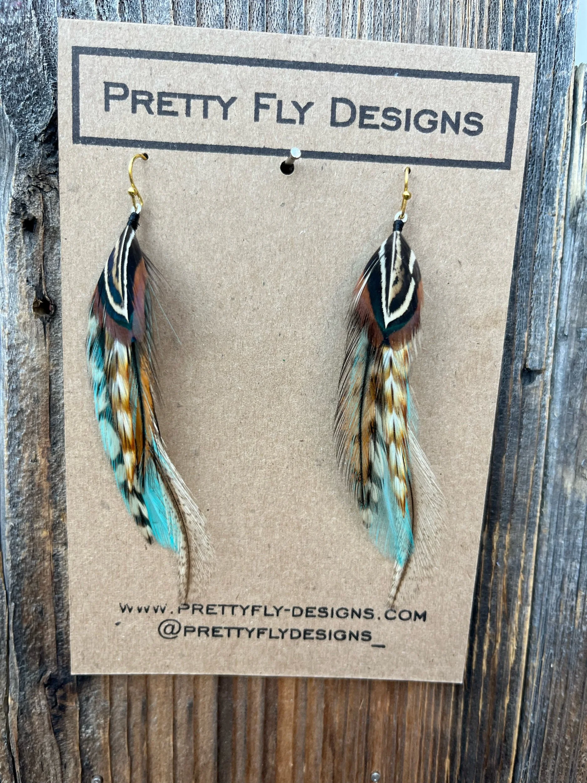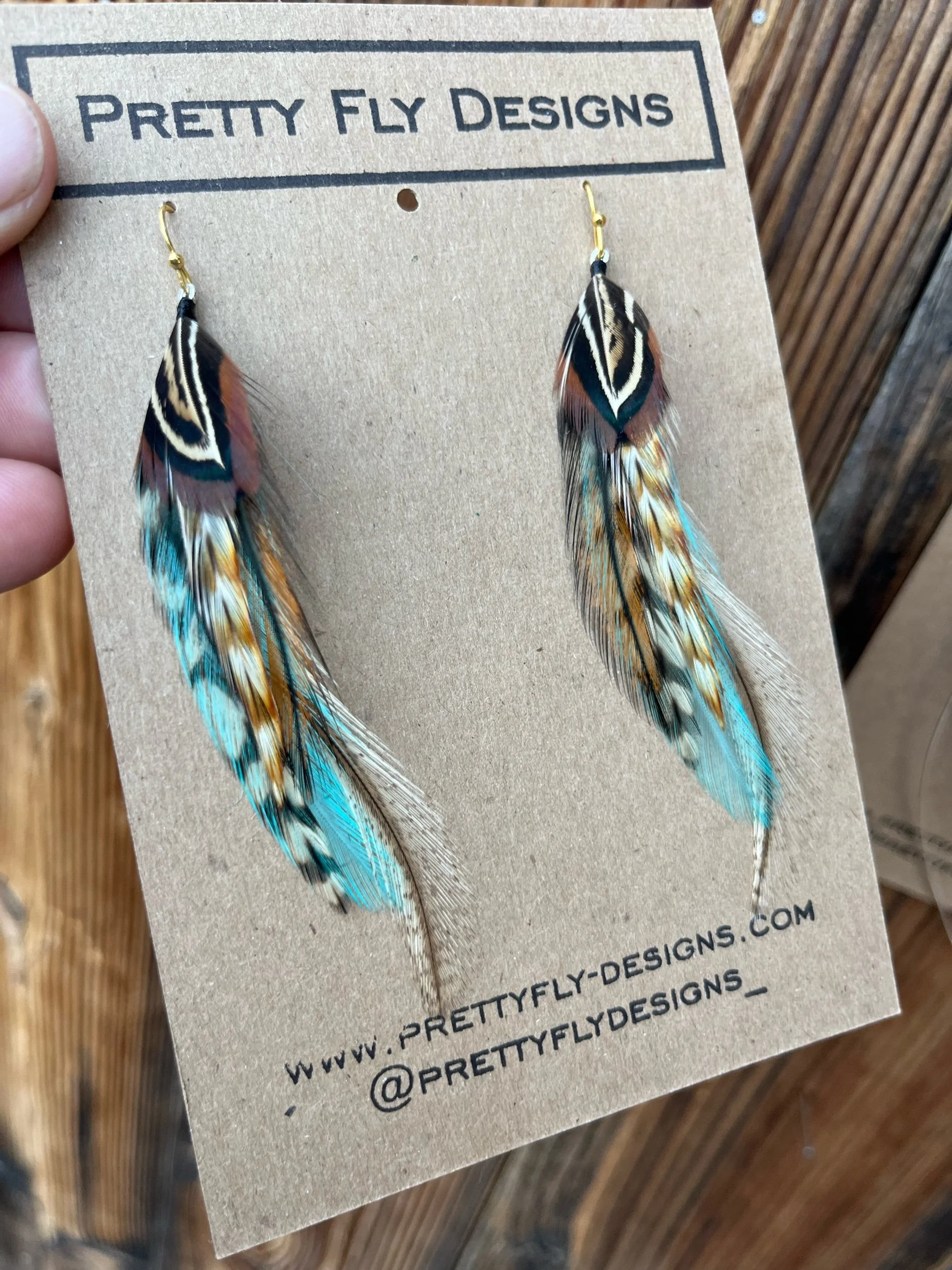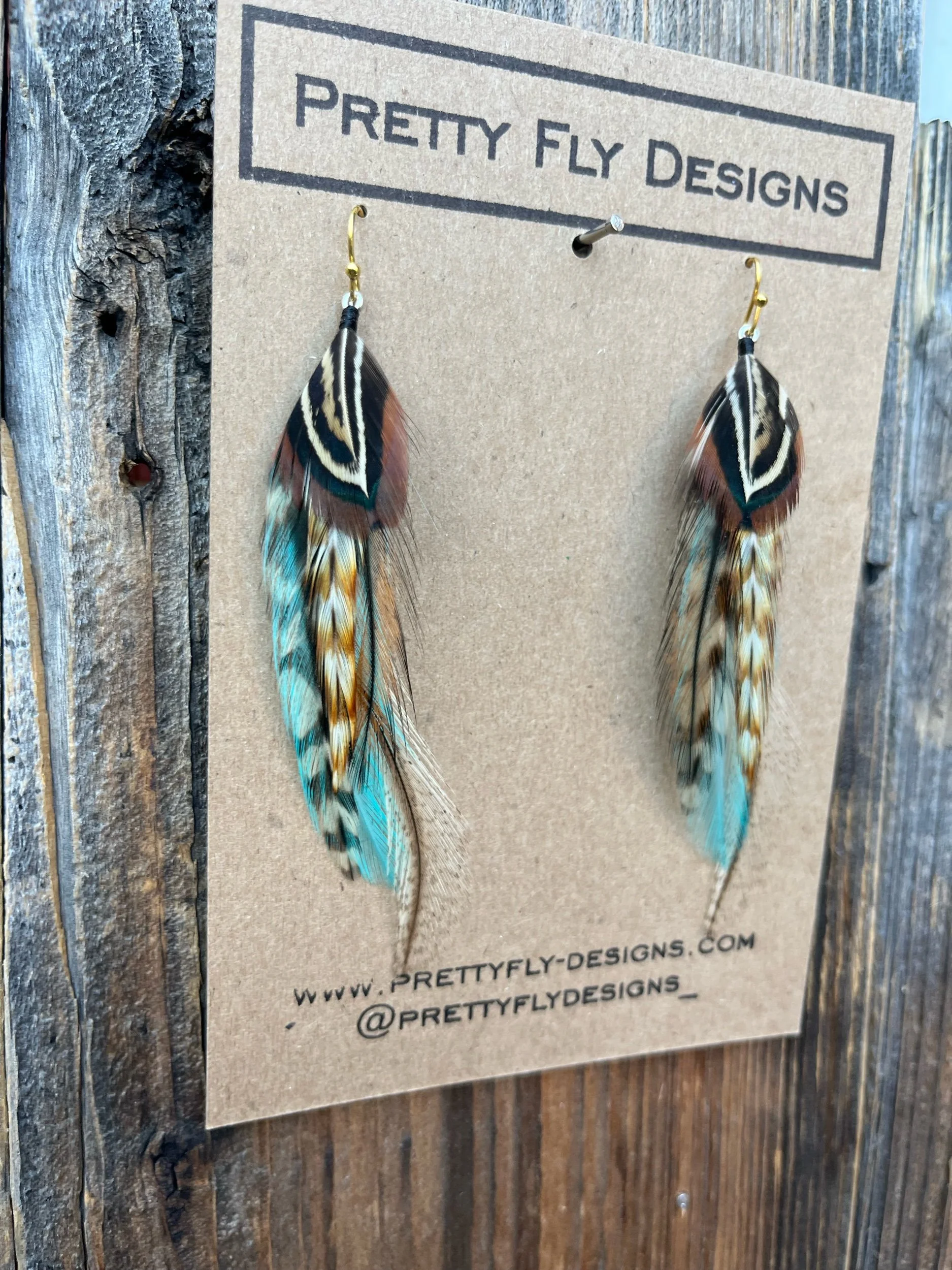 Earrings › Taryn Image 1 of 3 Image 2 of 3 Image 3 of 3 Taryn $43.00 Three and a half inch long pair of turquoise and western blend! Tied with Rooster and Ringneck Pheasant. Add To Cart Added! Three and a half inch long pair of turquoise and western blend! Tied with Rooster and Ringneck Pheasant.