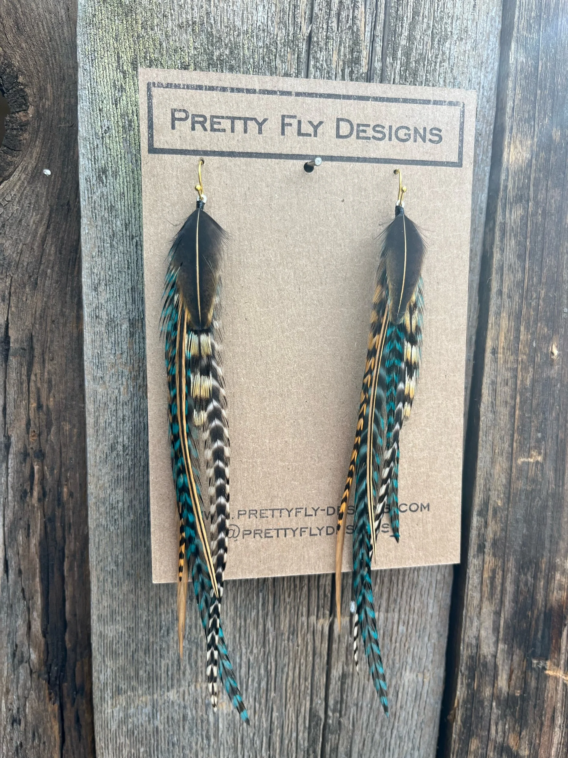 Earrings › Charlotte Variant Image 1 of 4 Image 2 of 4 Image 3 of 4 Image 4 of 4 Charlotte Variant Sale Price: $40.00 Original Price: $45.00 Another version of the popular Charlotte pair! Six inches long, tied with Rooster feathers. Add To Cart Added! Another version of the popular Charlotte pair! Six inches long, tied with Rooster feathers.