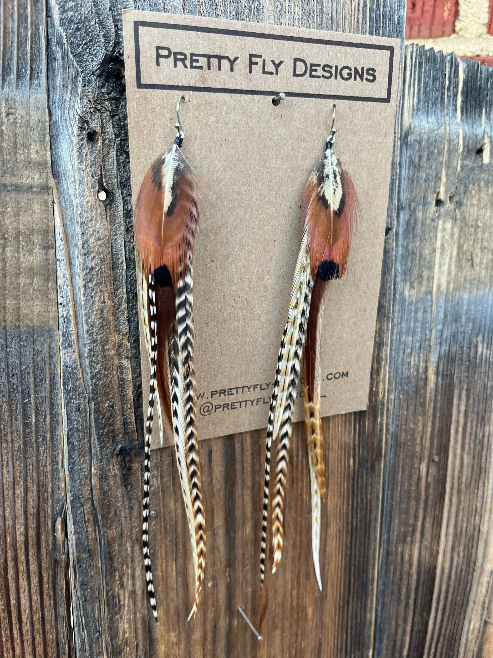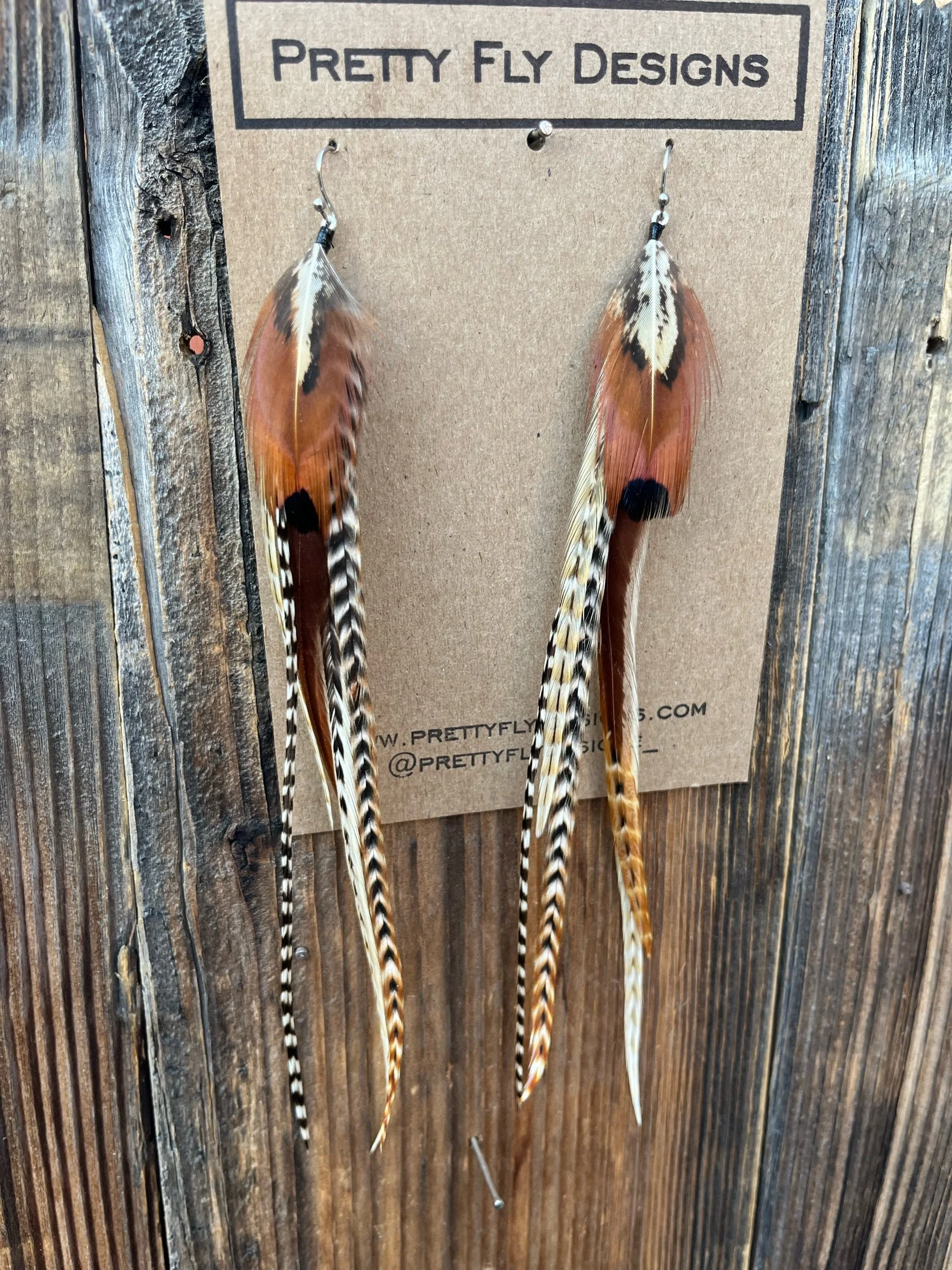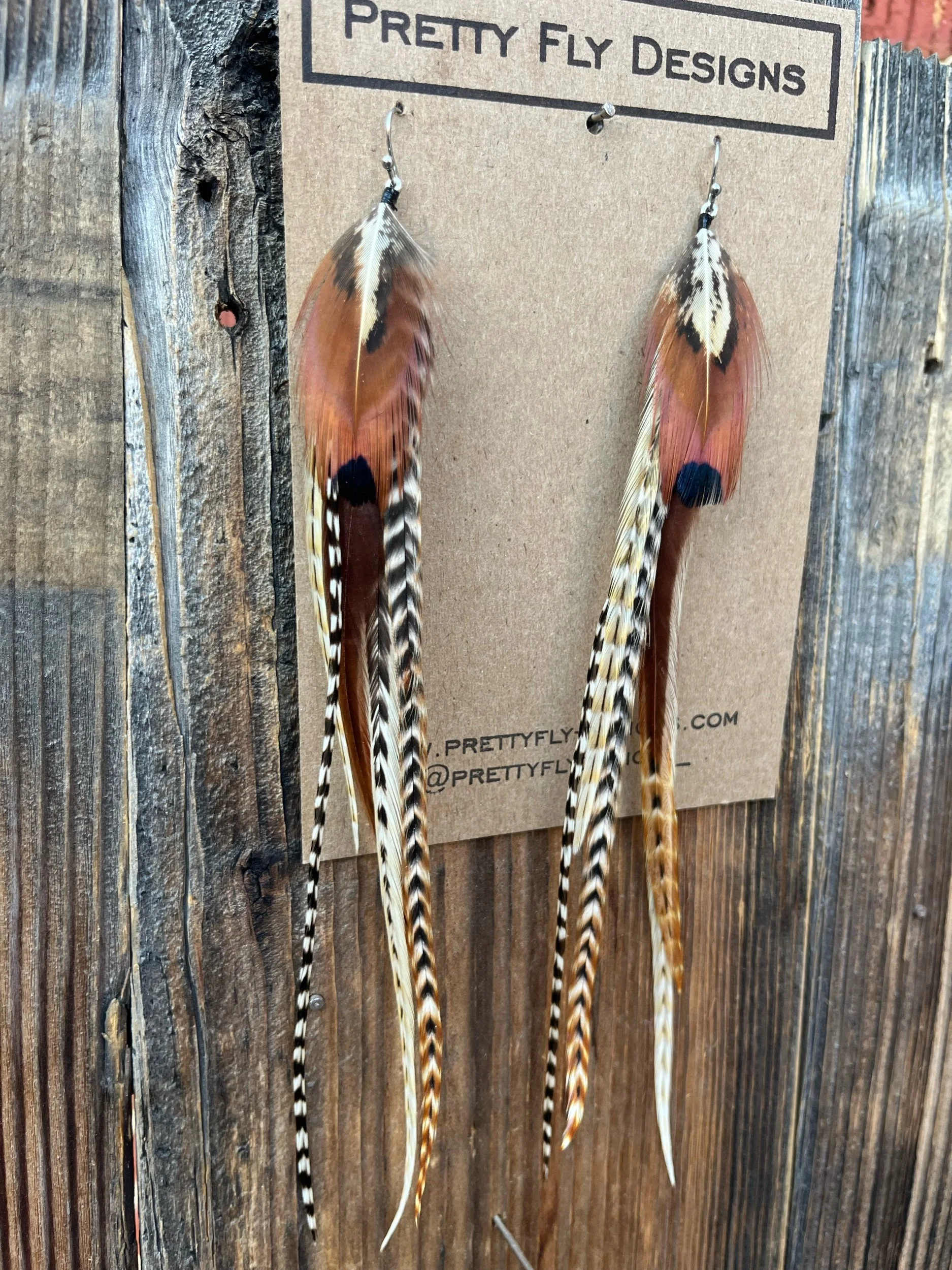 Earrings › Pearl Image 1 of 4 Image 2 of 4 Image 3 of 4 Image 4 of 4 Pearl Sale Price: $40.00 Original Price: $45.00 A seven inch all natural blend of Rooster and Ringneck pheasant. Goes well with everything!! Add To Cart Added! A seven inch all natural blend of Rooster and Ringneck pheasant. Goes well with everything!!